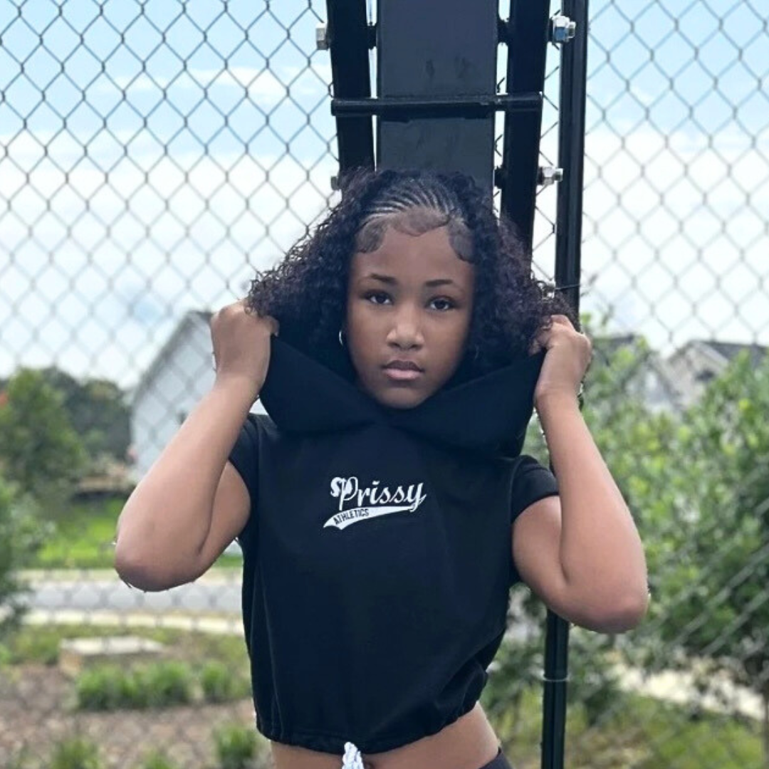 Embroidered Prissy Athletics logo (left chest)