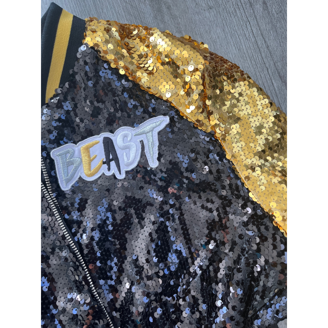 Gold & Black Sequin Cropped Varsity Bomber Jacket