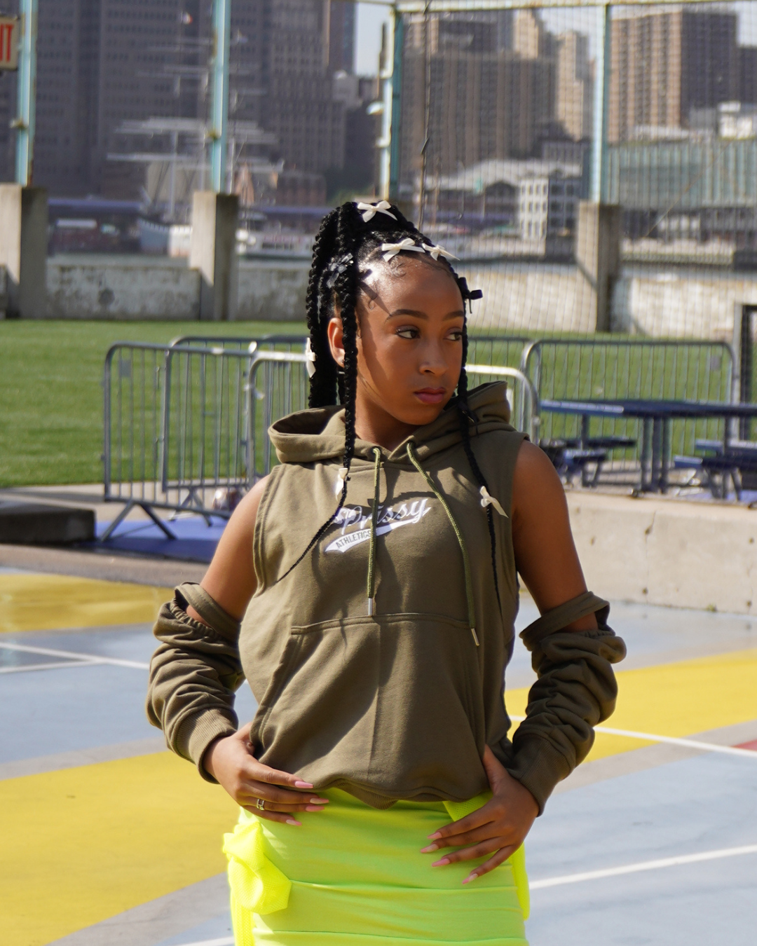 Even when switching it up — she stays locked in. 2-in-1 Pullover Hoodie with detachable sleeves to be worn with versatility. Featuring removable long to sleeveless muscle to top hoodie that adapt to changing temperatures and level up your style. Hoodie is double-layered with front Kangaroo pocket. This hoodie is super cozy 450 GSM terry fleece — thicker than your average hoodie, built for chill days and bold looks. Model is 4'11" wearing a size S.