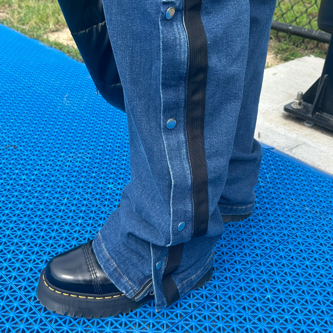 Tearaway ankle detail with zip + snap